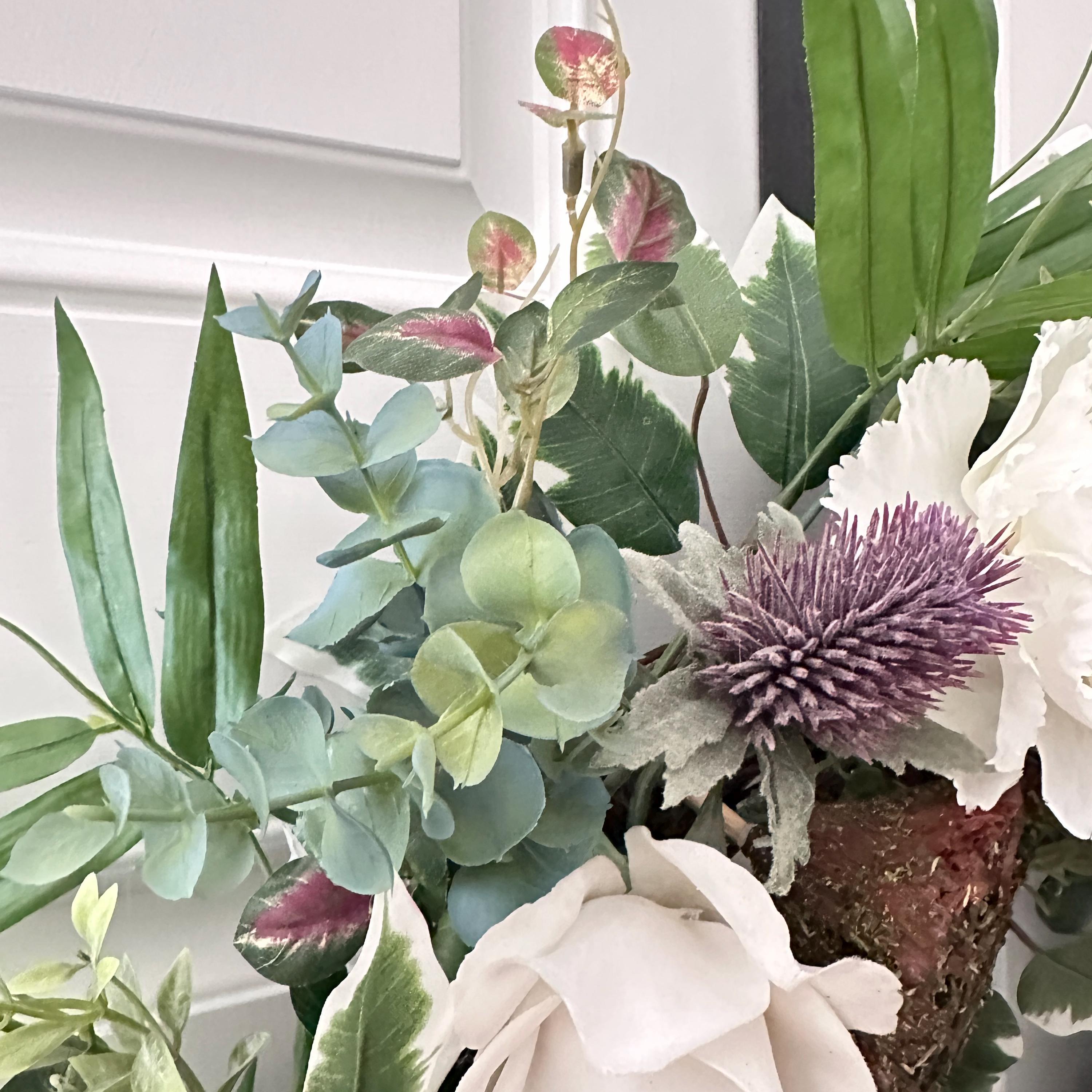 Perfect for year-round display, this wreath is a stunning addition to your front door, living space, or special event decor. Whether you're looking for a sophisticated wedding wreath, a unique housewarming gift, or a stylish way to refresh your home, this wreath is a perfect choice. Approximately 22-23" in diameter, and 6" deep.