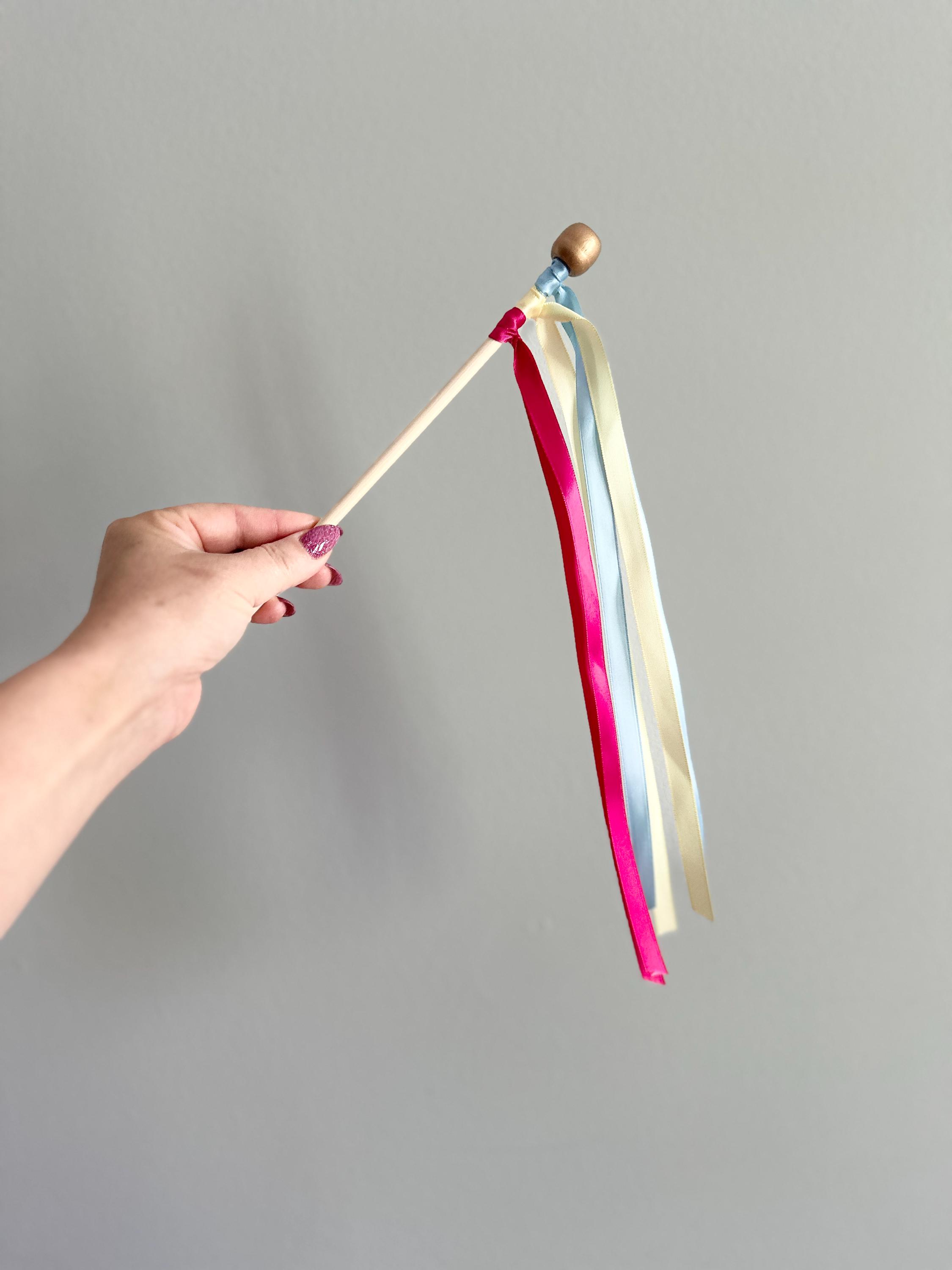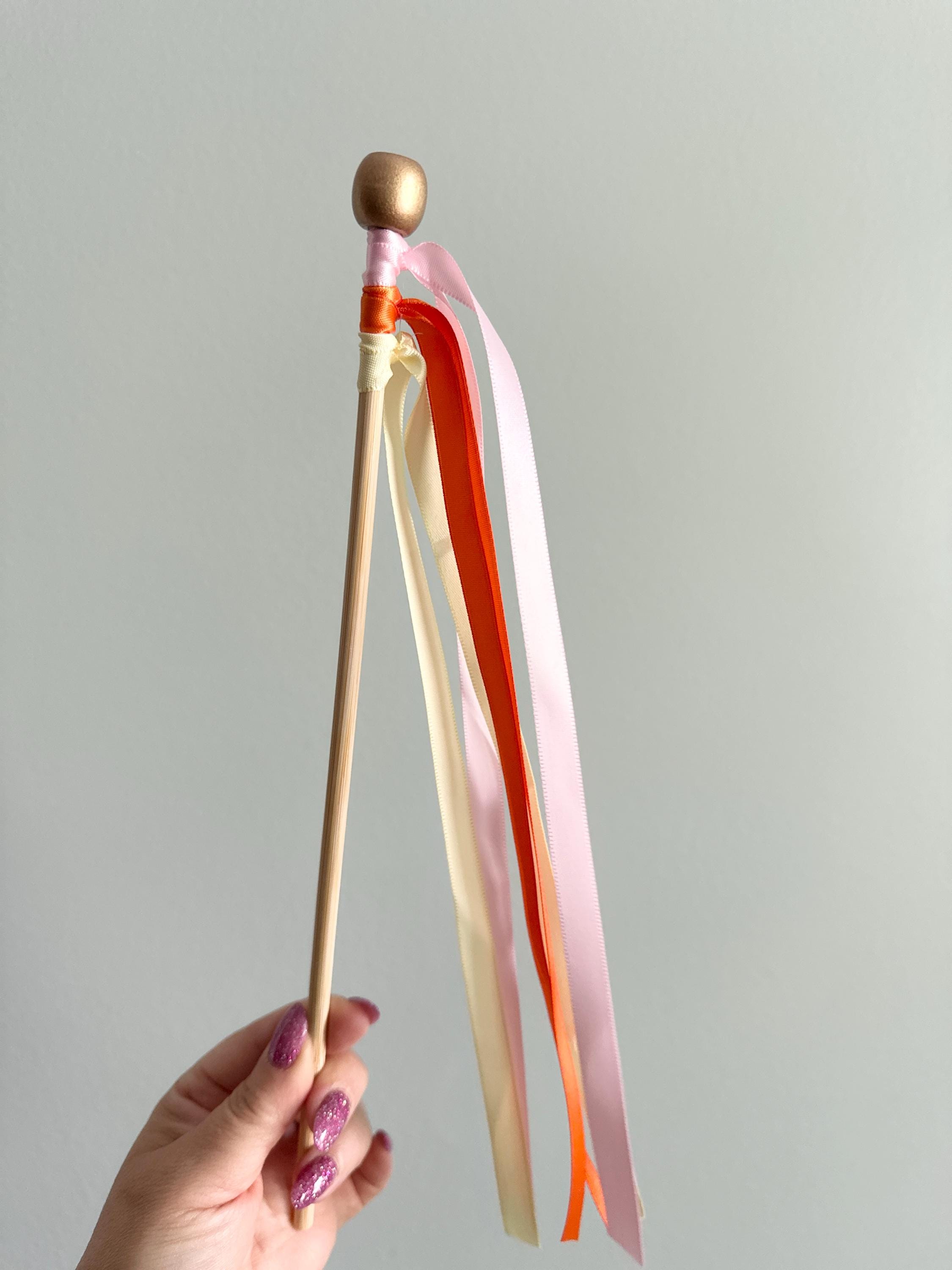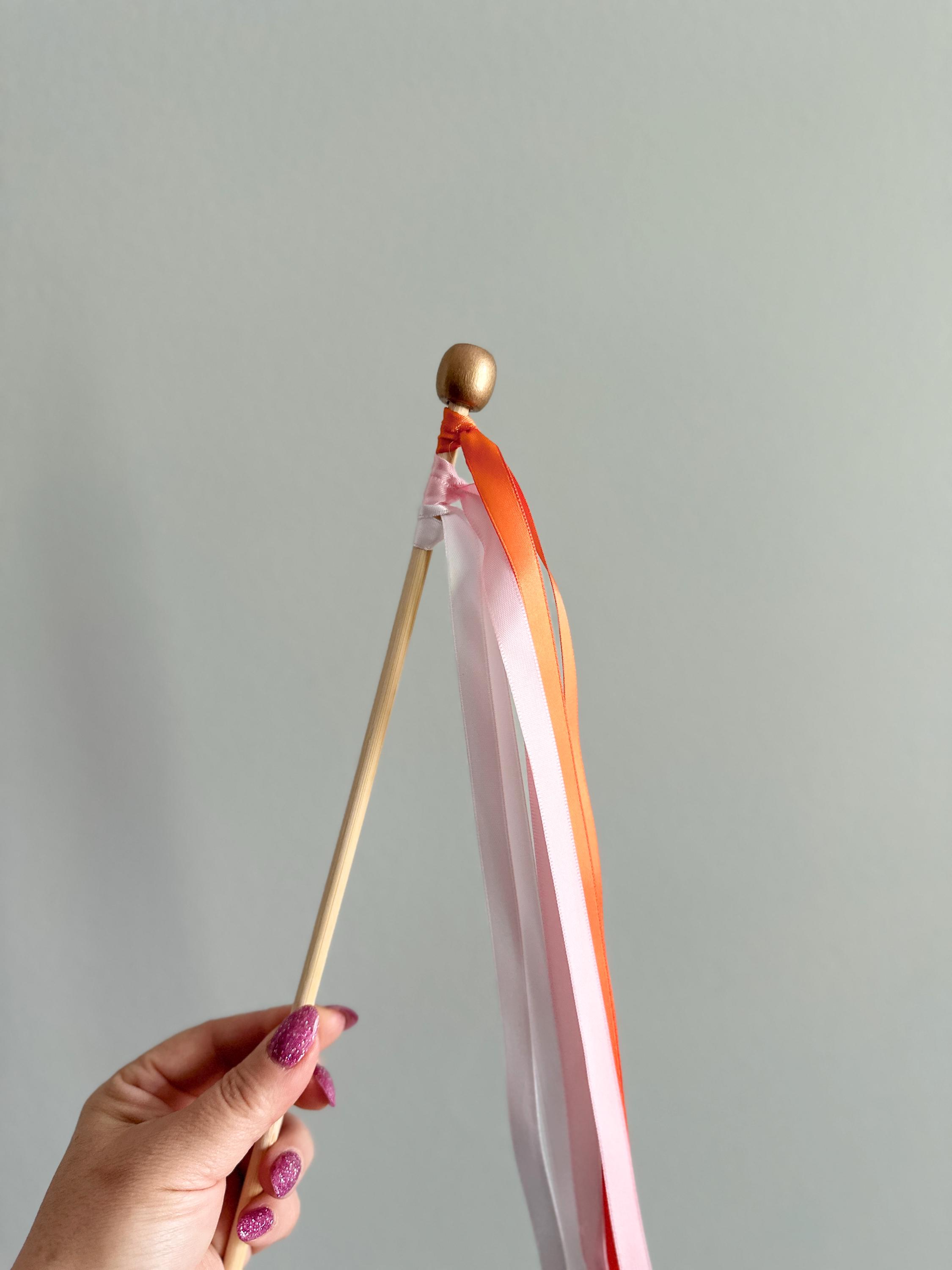 Hand-tied and glued satin ribbons in bright, joyful colors