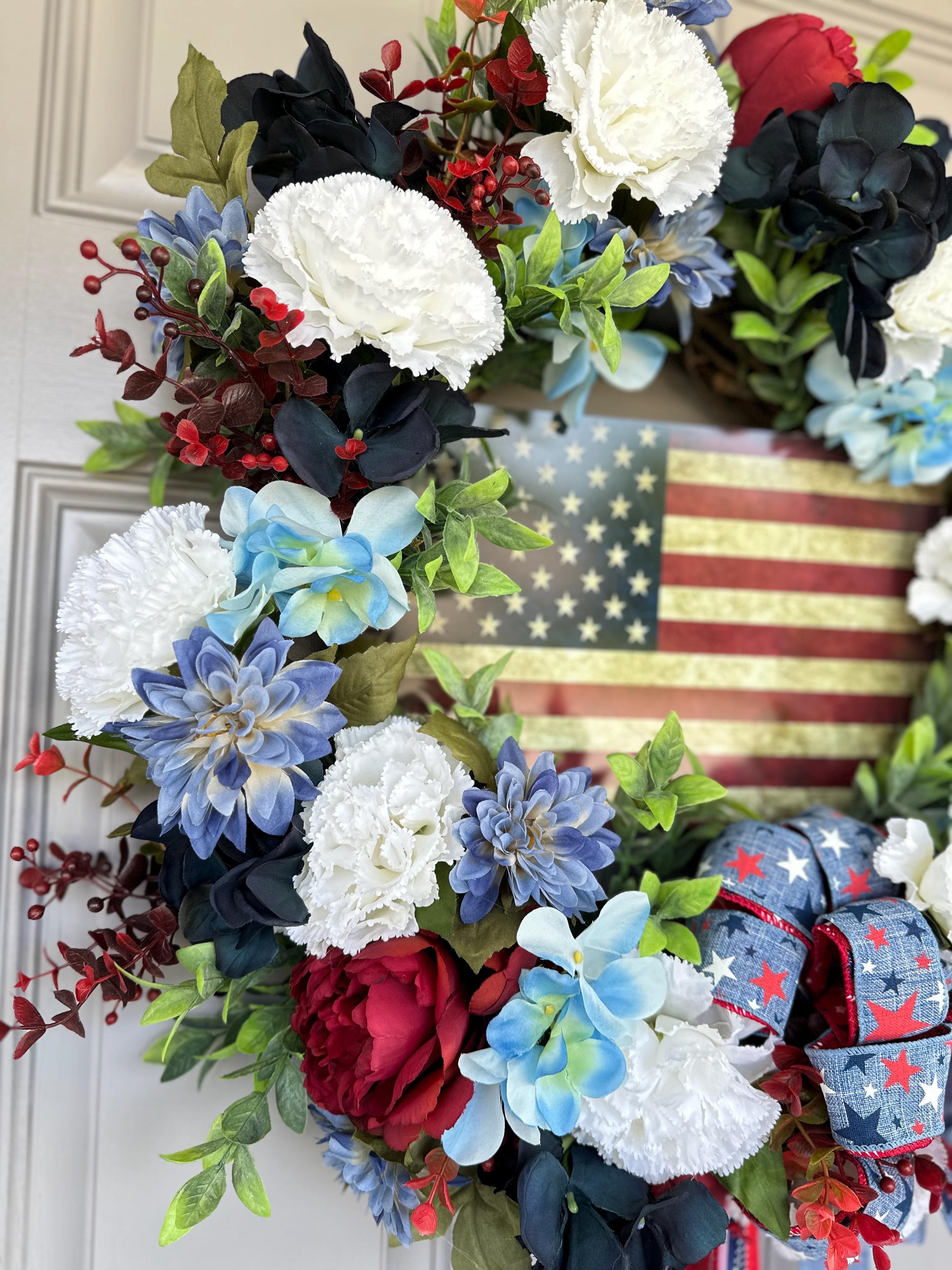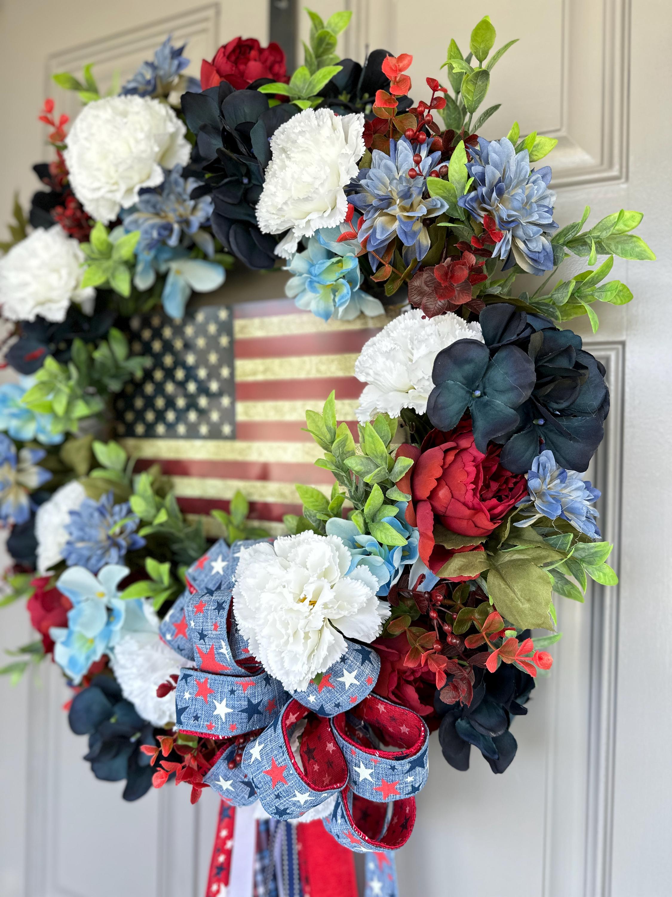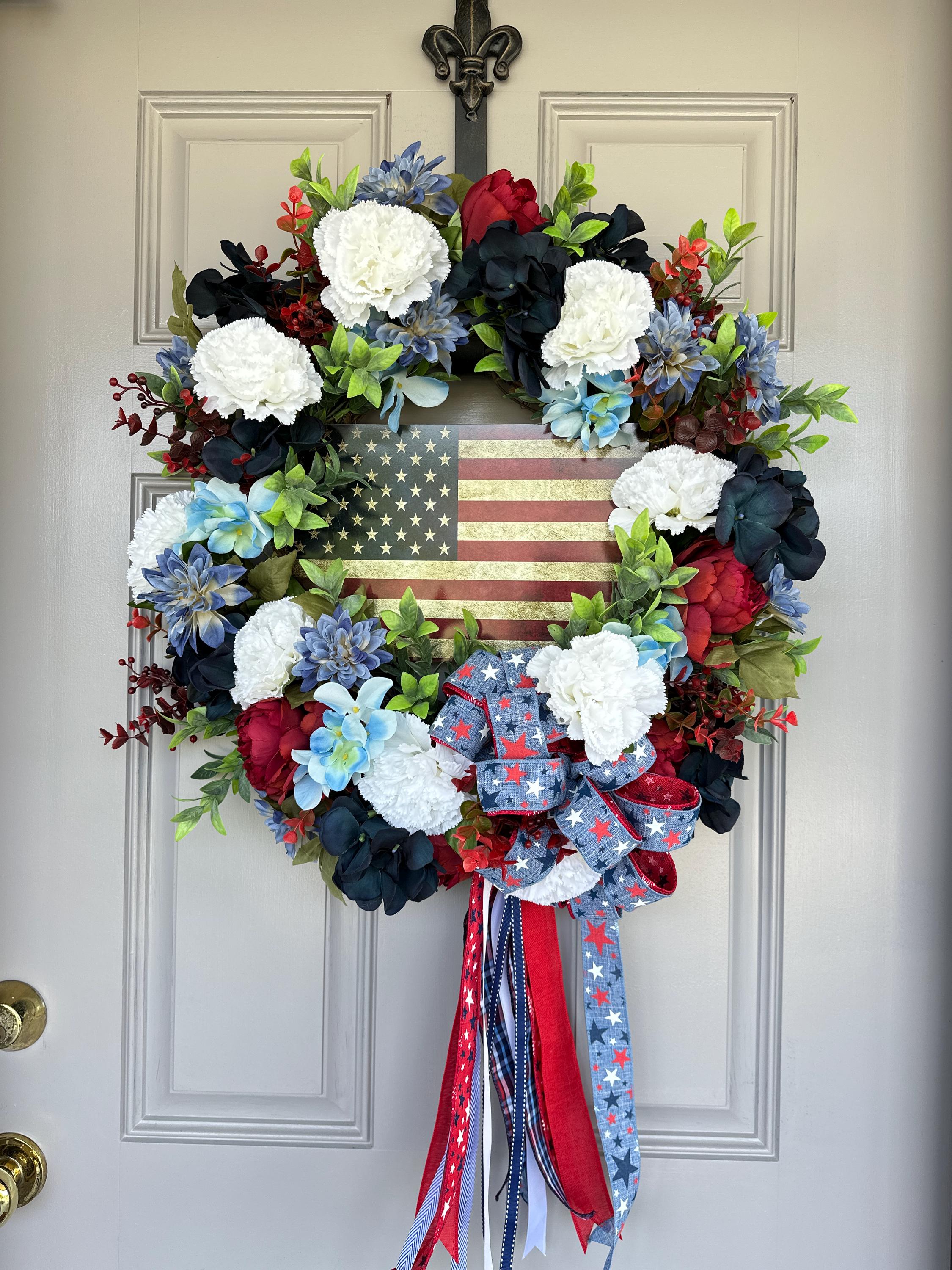4th of July Indepence Day wreath. Pictured on a standard size front door
