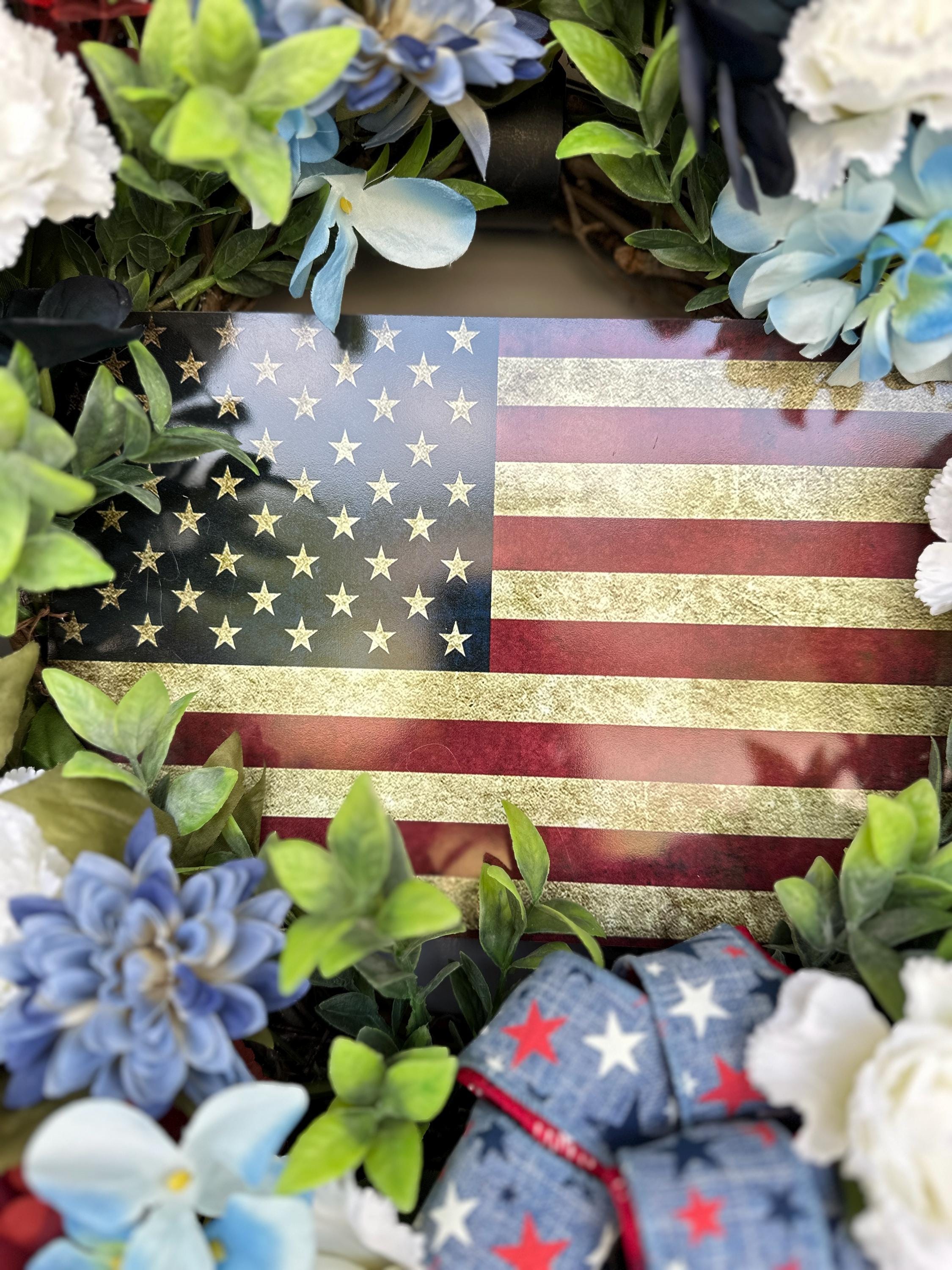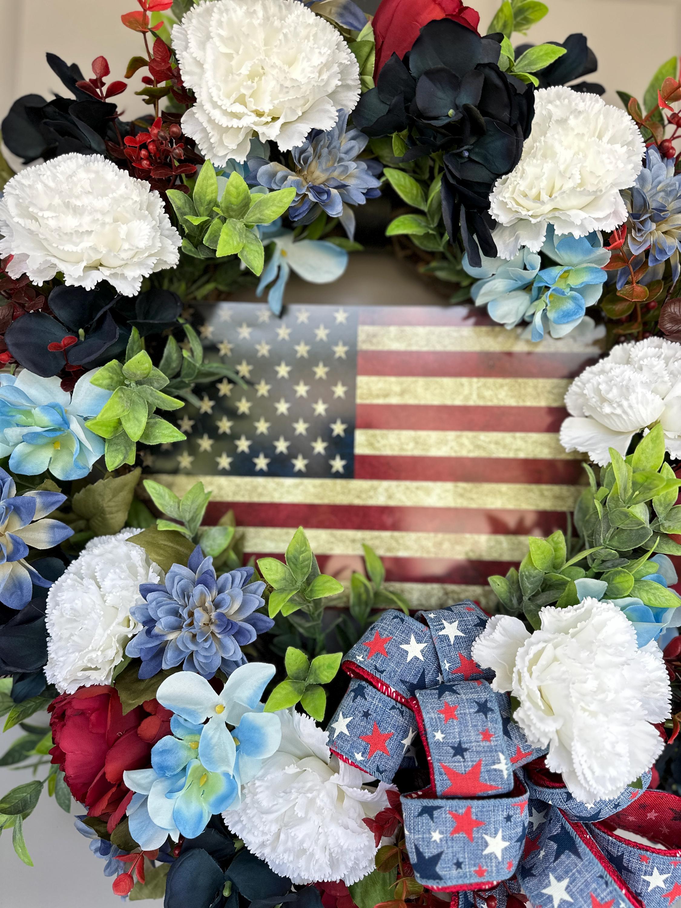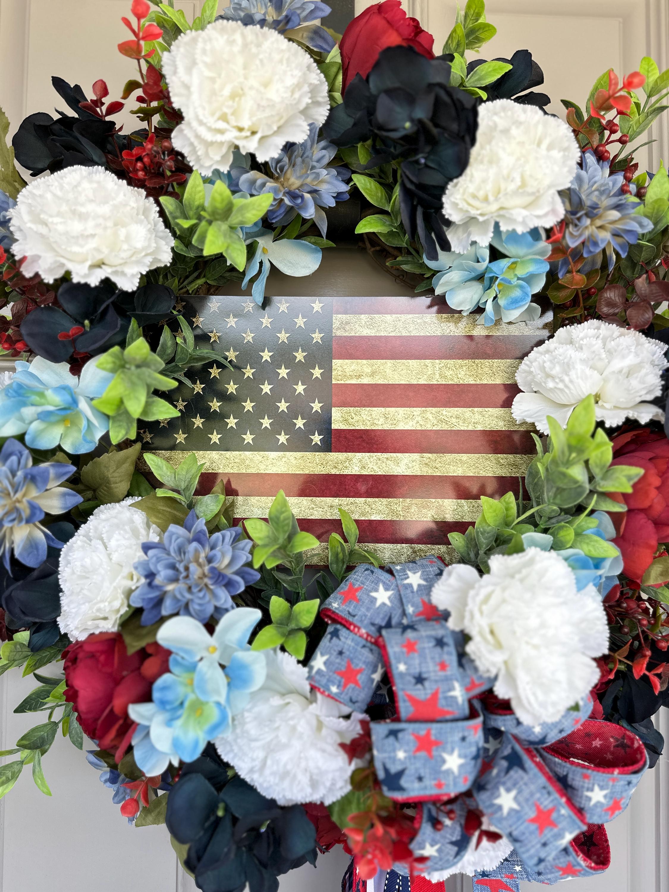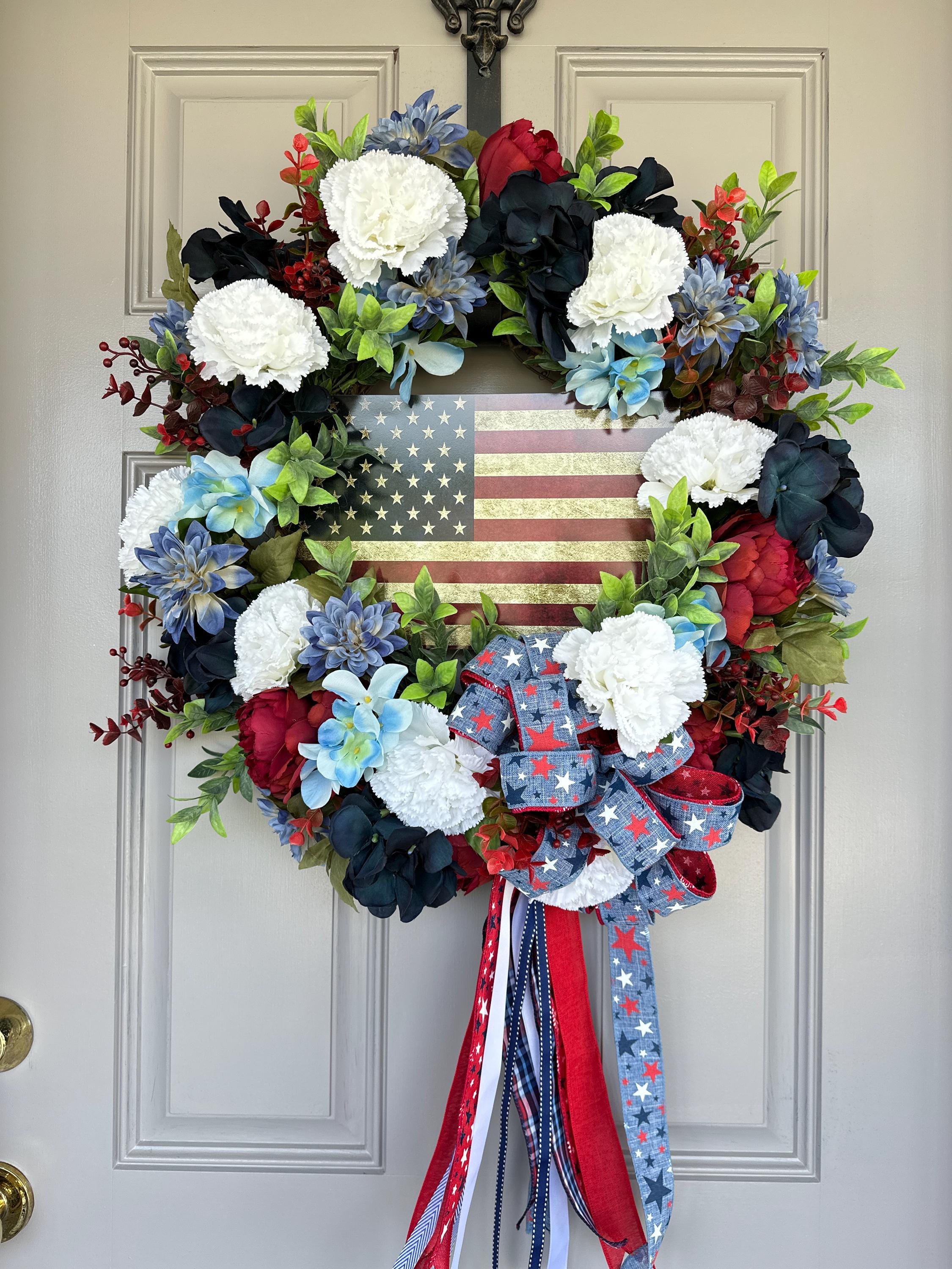 4th of July Indepence Day wreath. Pictured on a standard size front door
